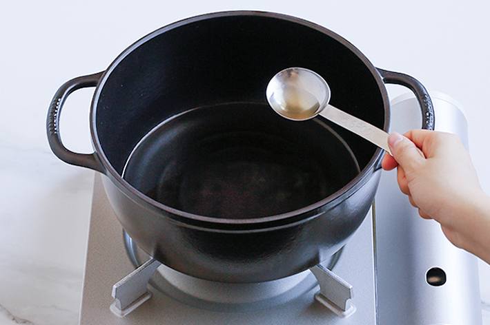 - 냄비에 물과 식초를 3:1 비율로 섞어 넣습니다.