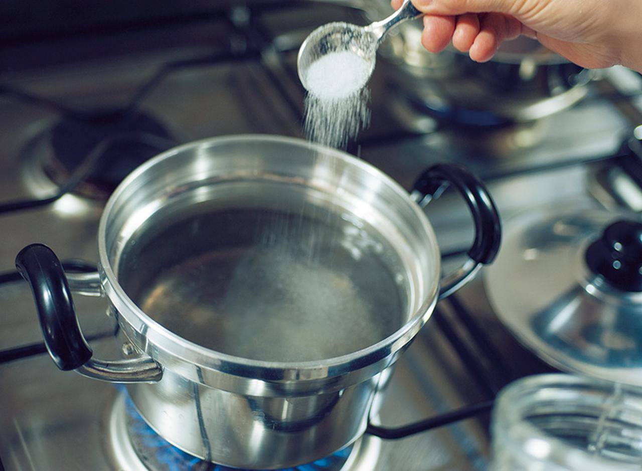 소금은 천연 연마제로, 냄비의 탄 자국을 부드럽게 제거할 수 있습니다.