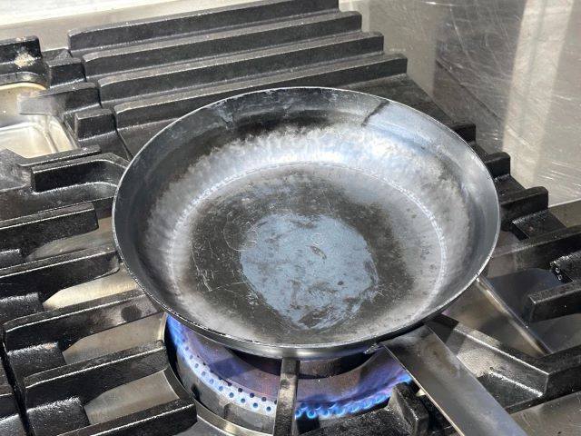 - 탄 냄비에 물을 조금 채우고 굵은 소금을 한 스푼 뿌립니다.