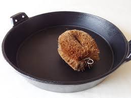 - 수세미로 소금을 문질러가며 탄 자국을 제거합니다.
